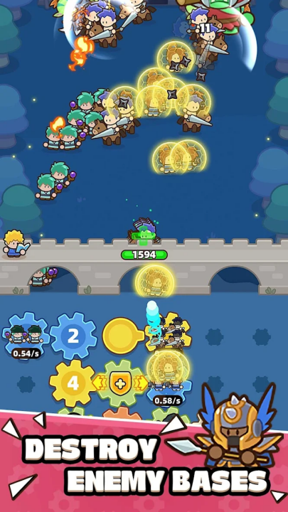 在你的冒险中,你将解锁 10 多种独特的兵种:坚韧的步兵、远程弓箭手、盾牌兵,甚至传奇魔法骑士……每种兵种都拥有独特的技能和升级路径。升级、强化、进化——将普通小队打造成精锐部队,见证堡垒威力飙升,直面更强大的敌人。
