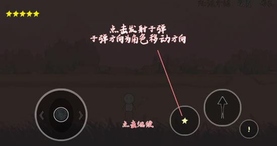 2、点击发射子弹,子弹方向为角色移动方向。