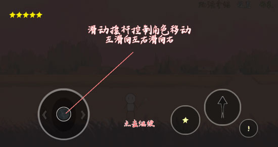 1、滑动摇杆控制角色移动左滑向左右滑向右。