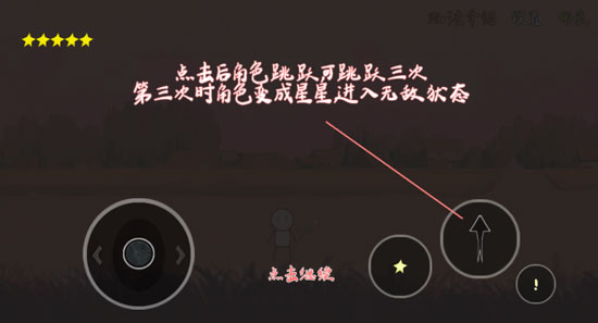 3、点击后角色跳跃可跳跃三次,第三次时角色变成星星进入无敌狱态。