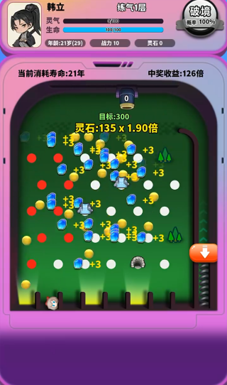 在布满精密机关的巨型弹珠台 上,弹射出你的「游历」弹珠!弹珠将在蜿蜒曲折、布满随机事件节点的「命运丛林」中疯狂碰撞——每一次弹跳、反弹、加速,都可能触发妖兽伏击、秘境入口,或天降奇缘!收集资源淬炼修为,突破境界逆转生死!