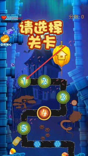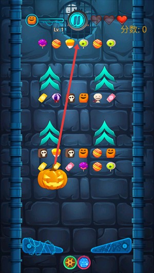 2、发射前预测南瓜的飞行路径,根据障碍物的分布调整角度和力道,准确到达目标区域收集糖果。