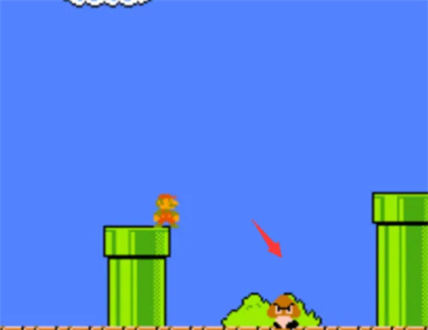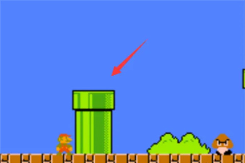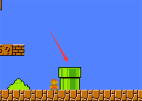 3、之后会出现第二个水管,我们先跳到水管上,因为后面有敌人。
