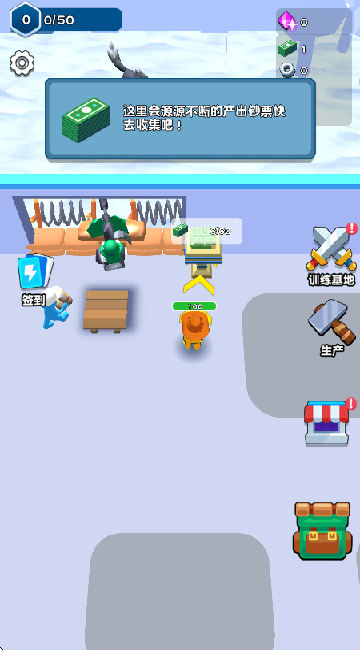 3、这里会有源源不断的钞票出现,记得收集钞票升级你的基地。