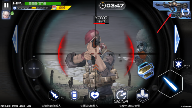 4、右上角可以切换主副武器,例如这里就切换到狙击枪了。