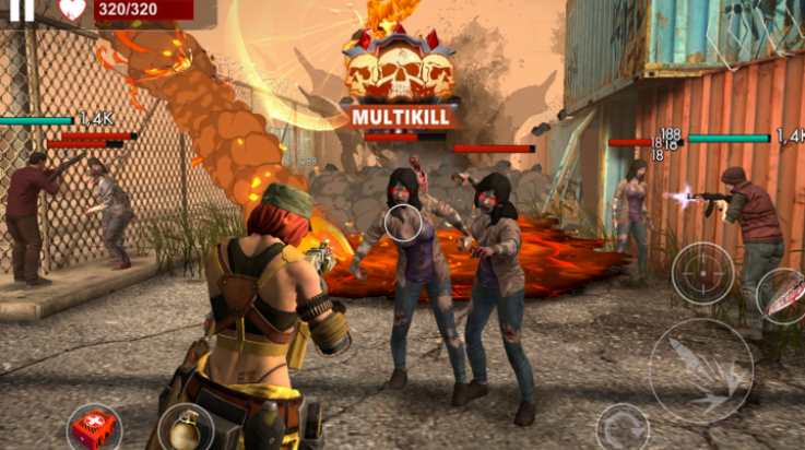 2、激烈的丧尸战斗:在震撼的3D画面中,面对无穷无尽的恐怖丧尸大军。