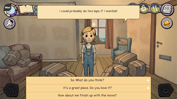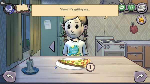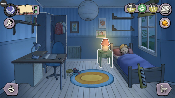 7、在游戏左上角的是一天的时间,每次互动都会度过一定时间,到了夜晚就需要上床睡觉来度过一天。