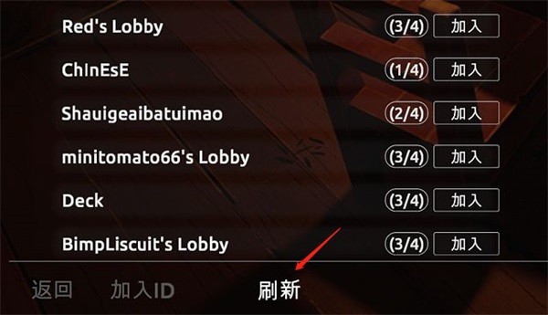 3、如房间列表已满,可手动点击底部按钮刷新房间列表。