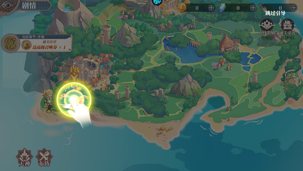 4、然后开始新手教程,跟随引导点击主线关卡;