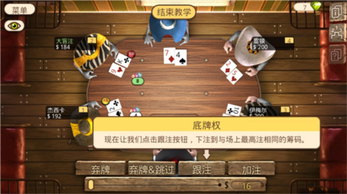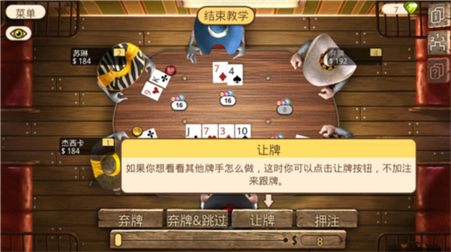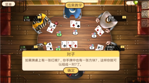 4、之后进入新手教程,在这里,玩家可以学习到扑克的基本知识;