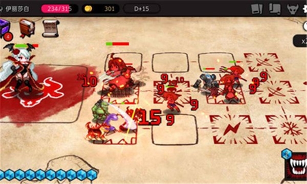 2、游戏战斗内会产生随机的怪物、而怪物行动和战斗效果触发也是随机的(走格子是随机的),战斗完依据战斗类型不同给予不同的奖励,精英战斗必得随机神器,boss战斗必得高级神器,而普通战斗完(其他战斗也有)会从魔王强化、合成卡牌、随机设施、怪物蛋、装备等随机3个供我们挑选。