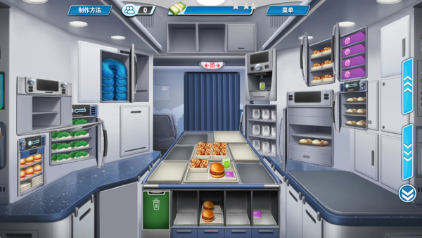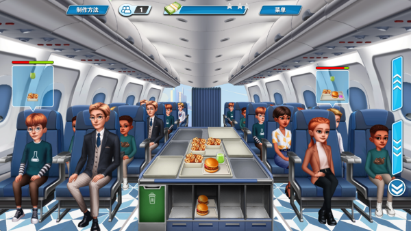 1、玩家需要管理飞机上的紧凑型厨房空间,合理规划每个工作台的功能布局以提高出餐效率。