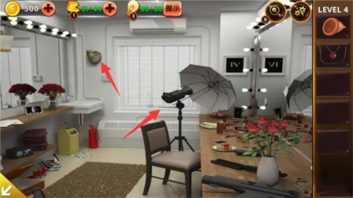 4、点击左边的墙,转动两个架子上面的暗槽就会打开。