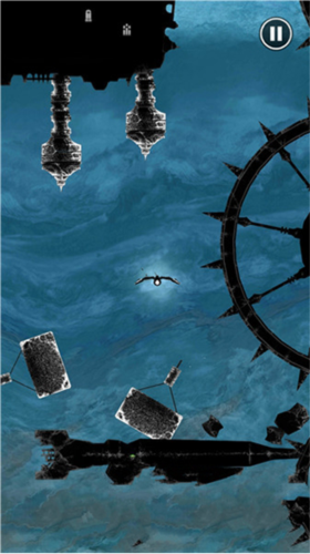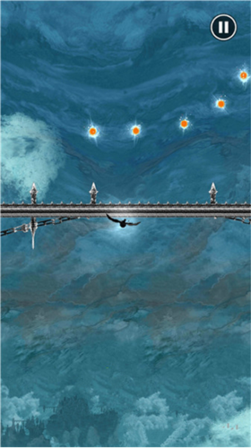 1、小女孩骑着一只黑天鹅在天空飞行,利用重力感应来控制黑天鹅防止天鹅陨落,当你的天鹅变成白天鹅的时候,说明你已经死亡了。游戏一共分为7个章节,每个章节都代表一个时代阶段。
