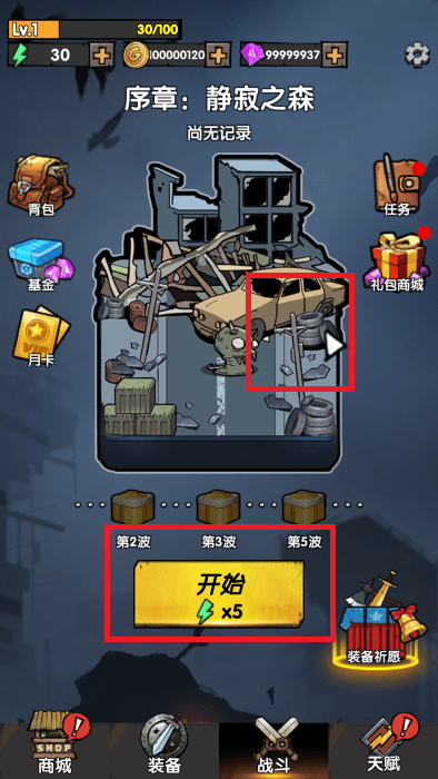 进入战斗界面,自动的攻击丧尸们。