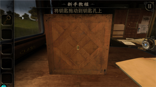 8、机关出现后会出现锁孔,插入钥匙旋转打开即可通过新手教程;