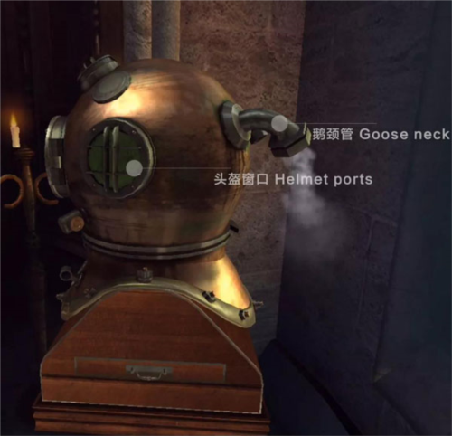头盔的防水性和密封性是保证潜水员安全的关键!所以在头盔谜题的最后,打开面板,紧接着水涌出的瞬间,联想到开头的信纸,就能猜测这位勇敢的水下探险家恐怕已经遭遇不测了……