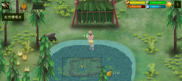 而水源方面,地图内没有河流可以取水,虽然会下雨但频率极不规律,不过在大雨过后,地图某个区域有概率形成可以饮用的水塘哦!