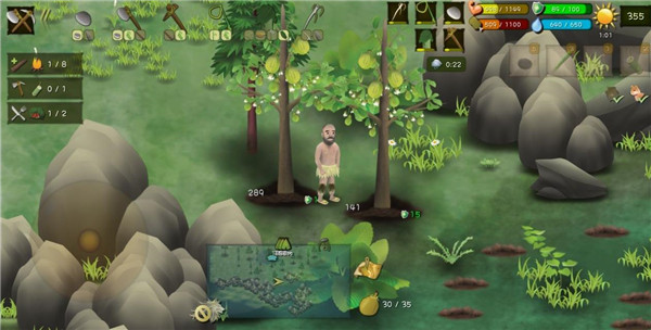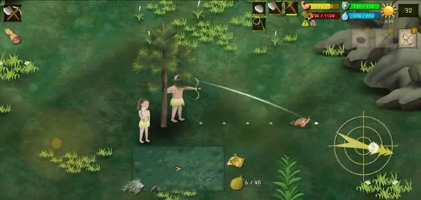 5、捕猎是个技术活游戏中有不少投掷类工具,石头,竹叉,弓箭。有时候你会碰到一些猎物,如草原上的兔子,池塘里的鱼。