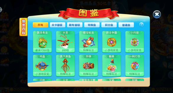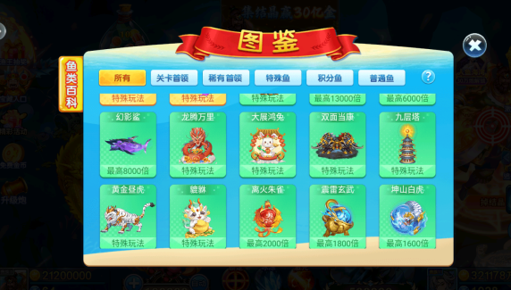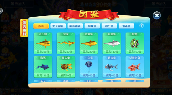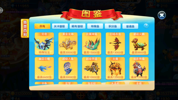 副本捕鱼:在经典捕鱼场景中会获得一定的奖章去开启我们的限时副本捕鱼玩法,选择海王捕鱼,和深海恶兽狂龙对抗,体验非一般的疯狂捕鱼;