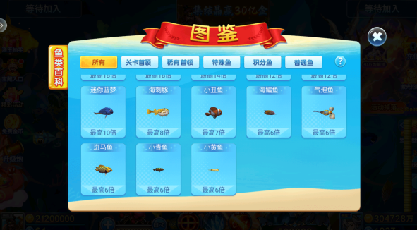 3、能量炮:持续时间内捕获鱼的奖励金币翻倍。