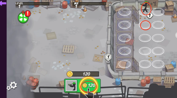 2、点击游戏中的金币,将火柴人安置在圆圈中,一个火柴人士兵120金币。