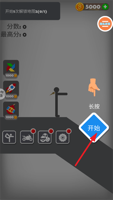 4、作死方式:各种作死的方式,玩家可以将火柴人虐成渣渣,这就是作死的下场了。
