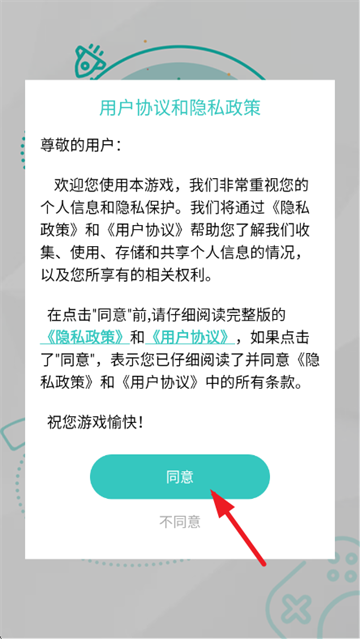 1、首先打开游戏,阅读并同意《隐私政策》和《用户协议》;