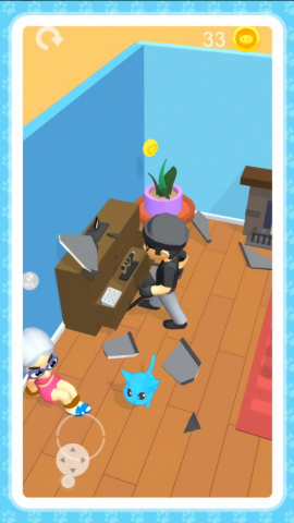 小土豆冒险记游戏是一款休闲闯关手游,采用3D卡通画风,玩家通过摇杆操作主角猫咪在厨房场景中完成捣蛋任务,游戏核心玩法为躲避主人追捕的同时解锁成就,通过收集金币和互动道具提升趣味性,玩家需利用环境道具,如打翻的锅具,干扰主人视线,同时完成关卡目标