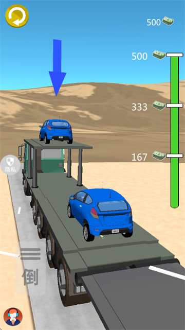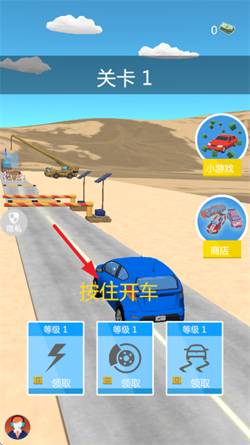 3、越过各种障碍后,需要将小汽车驾驶到箭头的方向即可通关。