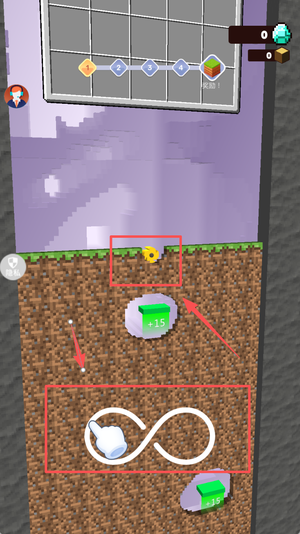 1、通过虚拟摇杆控制角色移动,使用钻头或锤子粉碎面前的岩石和障碍物。