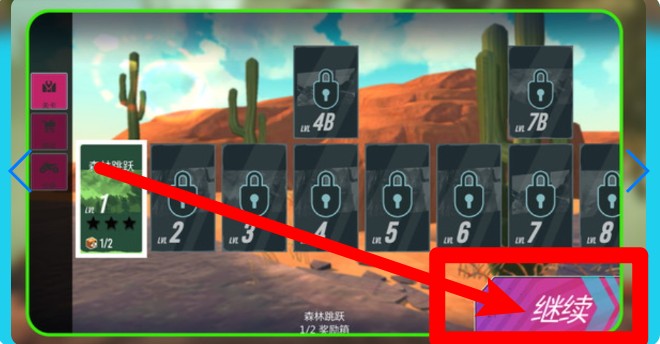 1.关卡选择:在关卡界面点击继续按钮解锁更多内容,每一关设有不同赛道与挑战,考验玩家的驾驶技术与反应能力。