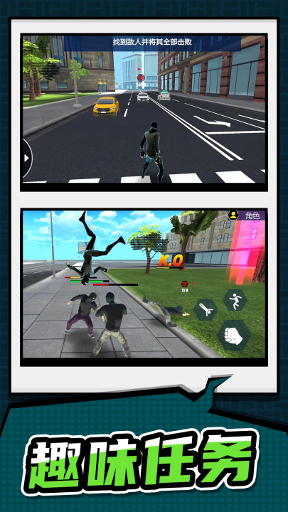 3、作为超级英雄的你每天都需要穿梭在城市的各个角落,击杀各种危害城市安危的敌人。