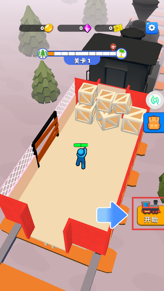 1、点击【开始】进入关卡1,利用车厢木箱掩体,准备抵御丧尸进攻,熟悉射击操作。