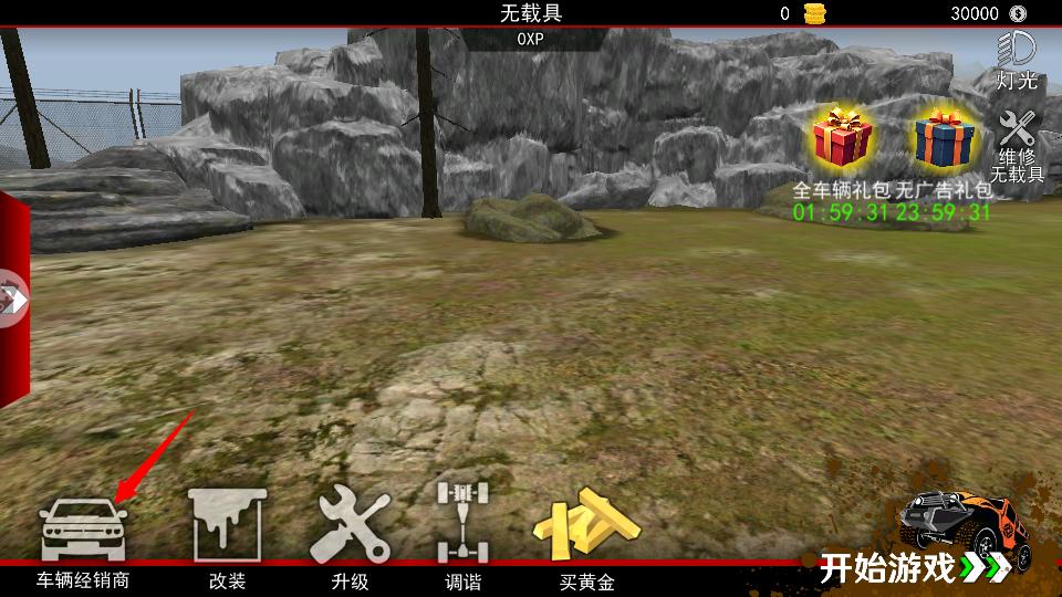 1、从车库挑选适合当前地形的越野车辆,不同车型具备独特的性能参数。