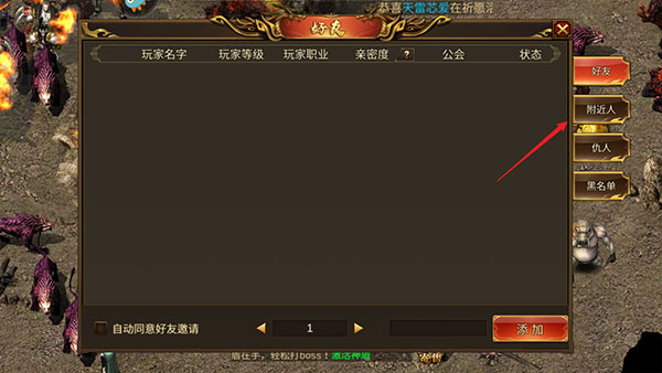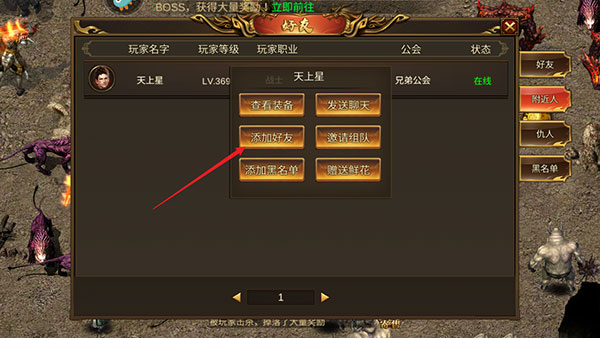 4、然后找到添加好友按钮,并点击它,申请发送成功后,等待玩家同意即可。