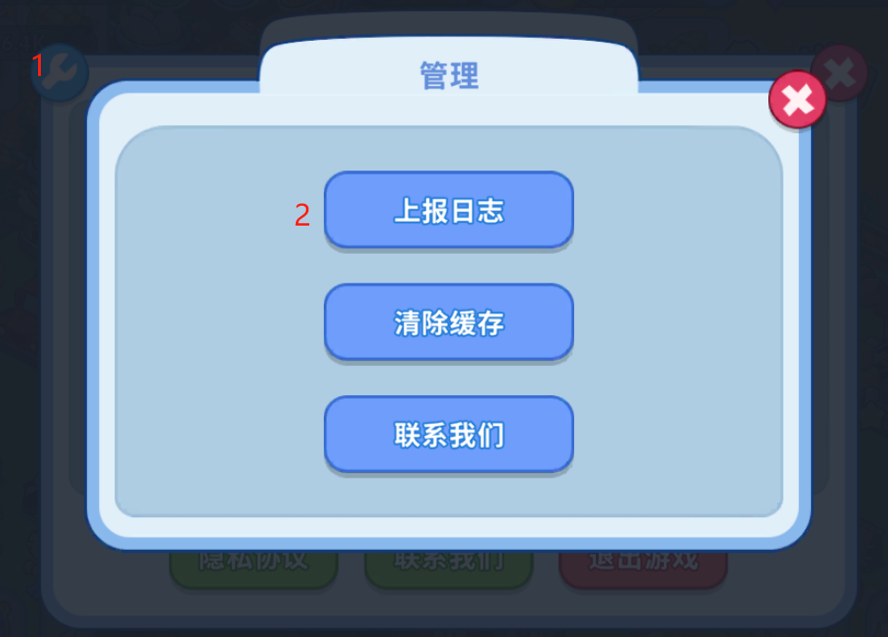 2)进入游戏:点击头像→扳手图标→上报日志,如图: