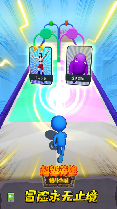 超级英雄格斗之城游戏是一款结合跑酷和卡牌对战的休闲游戏,玩家操纵角色不断前进躲避障碍并获得金钱兑换强力卡牌击败对手。 同样的卡牌可以合成高星强力卡,对决中往往至关重要;还可以获得角色皮肤、卡牌皮肤,还有隐藏玩法等你来发现!