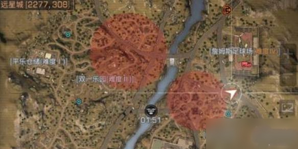 该地图的玩法类似于吃鸡,会随机生成轰炸区,处于范围内的玩家都会受到轰炸。天空中还会飞过运输机,会投放少量的补给箱,打开即可得到较为稀有的资源。在野外我们能够采集到许多的资源,但是不推荐玩家去获取木头、石头等低级资源,收益比较低,毕竟在外面的和平区也能得到。建议大家去采集铜矿、黄麻等,还可以去远星高中扫荡,能够得到较为丰富的资源。