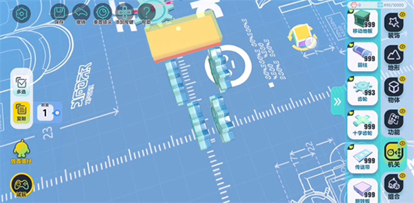 “圆柱”普通的摆放已经满足不了闯关大师们的需求,此时可以将“十字齿轮”【旋转】至立起,并且将其【移动】到“圆柱”上。