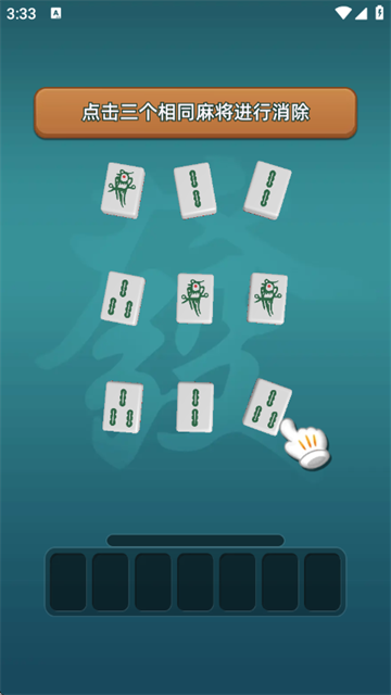 2、进入游戏后,点击三个相同的麻将进行消除;