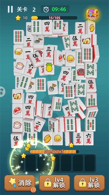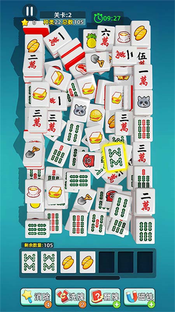 3、消除所有麻将即可赢得关卡;