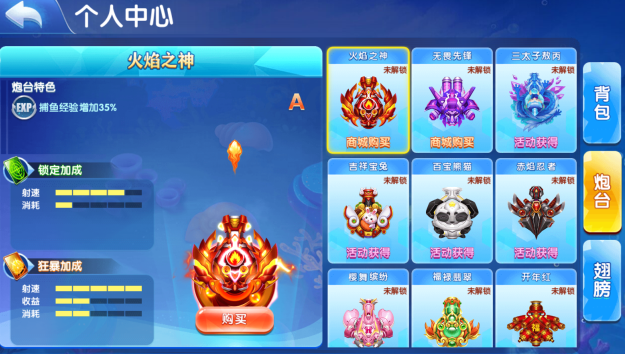 在辰龙捕鱼游戏里10分一个炮,100分两个炮,1000分三个炮,5000分以上四个炮。喜欢打渔的都是会调到最高炮,倍数是多,但并不合理。主要还是看渔场环境,这个只能自己去体会了