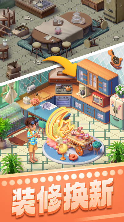 消一消,能开店。奶茶店、蛋糕店、糖果店、花店、书店、咖啡店、美式快餐店、玩具店、烘培店、巧克力店等等应有尽有。小镇的繁华集市被女巫破坏成了废墟,作为糖果王国的一份子,更是集市的管理者,我们必须帮助宾果击败邪恶的女巫,重建集市!