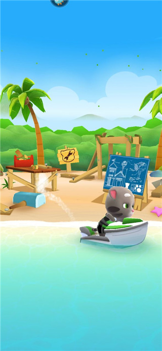 2、这里汤姆猫将驾驶着摩托艇;