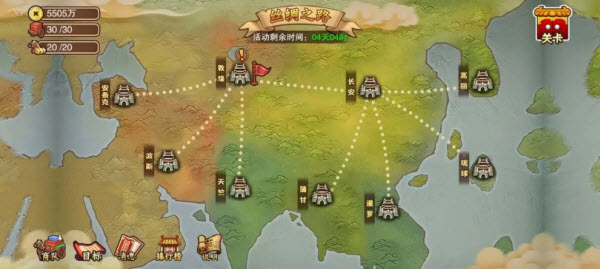 2、一天只有六个粮草,买卖特产时不要盲目追求最高价而白白浪费粮草,个人建议活动范围敦煌长安琉球高丽蒲甘暹罗六个城市往返即可。