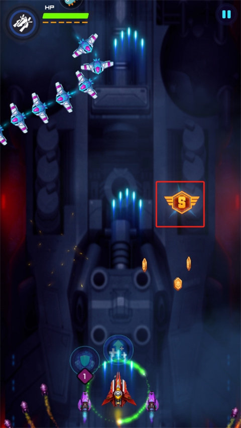 4、松开屏幕游戏自动进入子弹时间,这是可以放技能清理地方飞机或者给己方飞机加血加盾;
