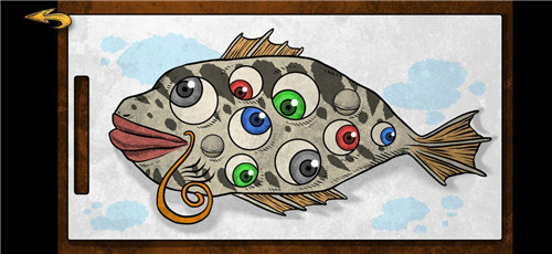 游戏不难,让两次点击出的鱼眼颜色一致就行,最后有一只眼睛关闭上了。点击就可以获得鱼眼。