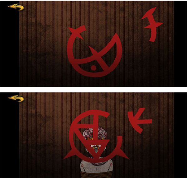将墙上的血色符号复原即可进行仪式。符号样式如下