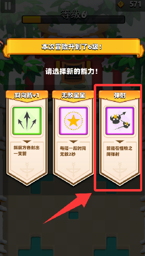 2、恭喜你升级了,点击弹射技能增加战斗力。